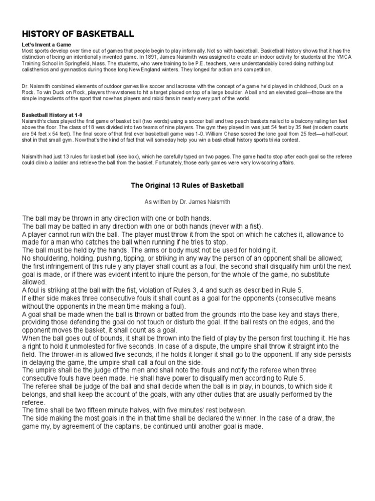 The original game played under these rules was quite different from the one played today as there was no dribbling dunking three pointers or shot clock and goal tending was legal. On january 15 1892 james naismith published his rules for the game of basket ball that he invented. Page 2 looks at dr.